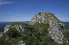 There are several speleological objects on the massif: the Horvat's or Klek cave (Klečka spilja in Croatian), the Half-cave (Polupećina in Croatian), the Jarunčica na Zakopi pit cave, and two pits found in this century, the Witch's pit cave (133 m deep), and another one whose entry is near the peak, at the height of 1162 m.[2]