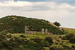 Knockdavie Castle is a now-ruined 17th-century house in Burntisland parish, Fife, Scotland.[1] The name probably derives from the Gaelic cnoc dubh -in "(place of the) black hill(ock)",[2] with cnoc dabhoch “the hill farm” another theory.[3] It is recorded under the alternative name of Stenhouse (stone house) in 1561, which survives in the name of the modern day adjacent farmhouse.[4][5] It is said to have belonged, in the seventeenth century, to a Douglas, recorded in an appendix to The Scots Worthies as an opponent of the Covenanters.[6][7][8]