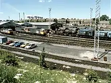 Knottingley TMD was a traction maintenance depot located in Knottingley, West Yorkshire, England. The depot was situated on the Pontefract Line and was near Knottingley station.[2] It opened in 1967 to maintain the locomotives and hopper wagons for a planned 75 Merry-go-round trains a day, expected to use the Wakefield and Goole line.[3]