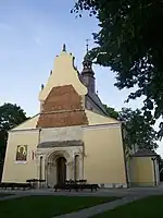 In the centre of the village is situated the church of Saint Adalbert of Prague (św.Wojciech in polish). It was founded in 1231 by the bishop of Kraków, Wisław Zabawa. The church is Romanesque in origin but rebuilt and restored many times, notably in the Baroque style.