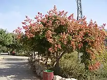 Koelreuteria bipinnata, also known as Chinese flame tree, Chinese golden rain tree, Bougainvillea golden-rain tree, is a species of Koelreuteria native to southern China. It is a small to medium-sized deciduous tree growing between 7–20 metres tall. It is few branched and is one of the few trees that bloom in summer. The tree can live 50 to 150 years.