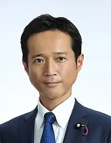 He was elected in 2013 and in 2019 for Tokushima, Kochi Prefecture. [1] In June 2023, he resigned after confessing he had assaulted his secretary.[2]