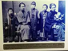 The wife of Mikimoto, Ume and his children in winter of 1895.