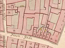 No. 16 and No. 17 seen on a detail from Christian Gedde's map of Copenhagen's West Quarter, 1757.
