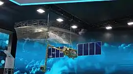 A mass simulator named Gruzomaket (aka Kondor-E-GVM, COSPAR 2003-055A [3]) was launched on 5 December 2003, and almost ten years later on 27 June 2013, the first spacecraft was launched. Kondor No.202 (aka Kosmos 2487, Kondor 1, COSPAR 2013-032A[4]) was operated by the Russian military,[1] and carried a radar imaging payload.[5] It was the first radar imaging satellite to be operated by the Russian military after the Soviet RORSAT and Almaz-T series. The first Kondor-E (Kondor-E 1, COSPAR 2014-084A[6]) launched 19 December 2014 for South Africa.[7]