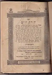 orat Haim, Oradea, 1927 - Book of Rbabi Chaim of Kossov