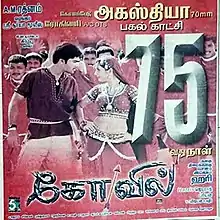 Kovil (transl. Temple) is a 2004 Indian Tamil-language romantic drama film written and directed by Hari and produced by A. M. Rathnam. It stars Silambarasan and Sonia Agarwal while Vadivelu, Rajkiran, Charle and Nassar play supporting roles. The music was composed by Harris Jayaraj, with editing done by V. T. Vijayan and cinematography by Priyan. The film released on 10 January 2004 and became a box office hit.[1]