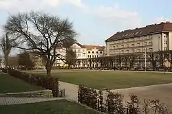 After World War II there was another development, housing estates were built south and later also north around. The railway with the station were relocated and some adjacent streets and blocks were rearranged.