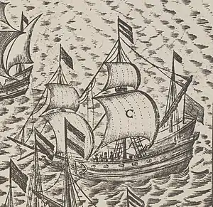 During the Polish wars with Sweden, it was drafted into the Polish navy along with Wodnik and Arka Noego. They fought in the Battle of Hel on 17 May 1627. After a short artillery duel the skirmish was over. The following day the escadrille met a convoy of 24 Swedish vessels off the coast of Biała Góra, near Łeba. After a short artillery barrage, the Polish ships managed to evade the enemy and headed for Kolberg (Kołobrzeg). Several days afterwards the escadre managed to break through the Swedish blockade and returned to Wisłoujście, one of two main bases of the Polish Navy.[1]