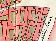 No. 137 seen on a detail from Christian Gedde's map of Copenhagen's West Quarter, 1757.