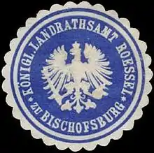 Initially, Rößel was designated as the district capital, but in 1862 it was relocated to Bischofsburg. Initially, the district was part of the Prussian government region of Königsberg, and on 1 November 1905 it was assigned to the newly founded Allenstein government region.
