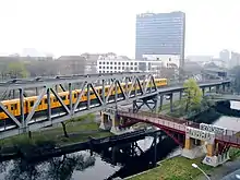Kreuzberg is bounded by the river Spree in the east. The Landwehrkanal flows through Kreuzberg from east to west, with the Paul-Lincke-Ufer street running alongside it. Other characteristics are the old U-Bahn line of the present-day U1, Görlitzer Park in the SO36 district, and Viktoriapark on the slope of Kreuzberg hill in SW 61.