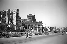 Both industrial quarters were almost entirely destroyed by air raids during World War II, with the American bombing by over a thousand aircraft on 3 February 1945. In remembrance of the old tradition, the Axel Springer press company erected its German headquarters at Kochstraße again, right next to the Berlin Wall.
