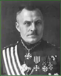Krišjānis Berķis (April 26, 1884, in Īslīce parish, Bauska municipality, Courland, modern Latvia – July 29, 1942, in Perm, Russia) was a Latvian general. Rising to prominence as an officer of the Latvian Riflemen in World War I, he was promoted to the rank of general during the Latvian War of Independence, and served on the Army General Staff after the war.[1] After the Soviet occupation of Baltic states he was deported to Siberia and died in a Gulag labor camp.