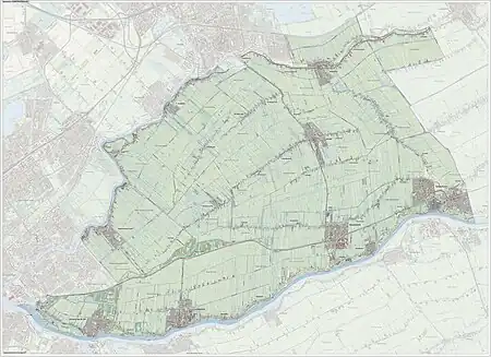 Krimpenerwaard (Dutch pronunciation: [ˈkrɪmpənərˌʋaːrt]) is a municipality, a region and a former water board of the Netherlands. It is a rural area located in the east of the province of South Holland, just south of Gouda and east of the Rotterdam conurbation. It is bordered on the north by the river Hollandse IJssel, on the south by the river Lek and on the east by the stream Vlist.[1]