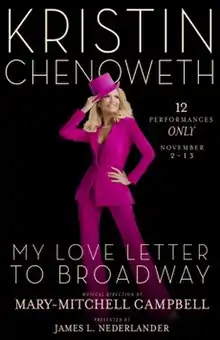 Kristin Chenoweth: My Love Letter to Broadway is a 2016 musical revue-style concert, written for and starring American singer and actress Kristin Chenoweth. The show was directed by Richard Jay-Alexander, with musical direction by Mary Mitchell Campbell, and produced by James L. Nederlander. The show was a limited engagement of 12 performances at Broadway's Lunt-Fontanne Theatre from November 2 through 13, 2016.[1][2]