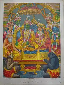 Kṛttivāsī Rāmāyaṇ,[lower-alpha 1]; also called Śrīrām Pãcālī,[lower-alpha 2] composed by the fifteenth-century Bengali poet Krittibas Ojha, from whom it takes its name, is a rendition of the Rāmāyaṇa into Bengali. Written in the traditional Rāmāyaṇa Pā̃cālī form of Middle Bengali literature, the Kṛttivāsī Rāmāyaṇ is not just a rewording of the original Indian epic, but also a vivid reflection of the society and culture of Bengal across the period of its circulation, from the Middle Ages into the modern period.[1] It was characterised by Dinesh Chandra Sen in 1911 as 'by far the most popular book in Bengal' and 'the Bible of the people of the Gangetic Valley'.[2]