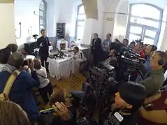 Charamsa timed his coming out in anticipation of the second session of the Bishop's Synod on the Family, scheduled to begin on 4 October 2015. Two days before it opened, he announced he was gay in an interview in Polish for a film then in production, Article Eighteen, a documentary about the campaign for same-sex marriage in Poland.[5][lower-alpha 1] His announcement attracted considerable attention in the Polish media.[8][9][10]