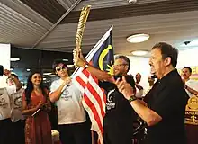 ![]() Ku Jaafar in the middle holding the Queen's Baton in 2010 | |