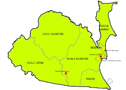 - ↑ "Peta & Keluasan". Pejabat Daerah dan Tanah Kuantan. Archived from the original on 2018-02-25. Retrieved 2017-11-28.