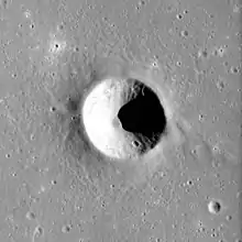 Kuiper (/ˈkpər/ KY-pər) is a small lunar impact crater in a relatively featureless part of the Mare Cognitum. It is a circular, cup-shaped feature with only some minor wear. It was named after Dutch-American astronomer Gerard Kuiper in 1976.[1] Kuiper was the Project Scientist for the Ranger program. This crater was previously identified as Bonpland E. The lava-flooded crater Bonpland lies to the east at the edge of the Mare Cognitum.