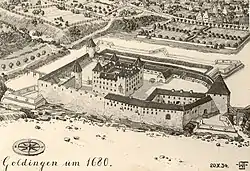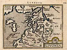 Kuldīga was first mentioned in 1242. It joined the Hanseatic League in 1368.[7] In the 17th century, Kuldīga (along with Jelgava) was one of the capitals of the Duchy of Courland from 1596 to 1616.[8]