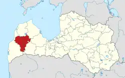Kuldīga Municipality (Latvian: Kuldīgas novads) is a municipality in Courland, Latvia. The municipality was formed in 2009 by merging Ēdole parish, Gudenieki parish, Īvande parish, Kabile parish, Kurmāle parish, Laidi parish, Padure parish, Pelči parish, Renda parish, Rumba parish, Snēpele parish, Turlava parish, Vārme parish and Kuldīga town. The administrative centre is Kuldīga. As of 2020, the population was 22,028.[3]