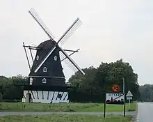 The Kulla Gunnarstorp mill is a Scanian historical landmark[1] north of Helsingborg, Sweden, in the suburb of Hittarp. It is a smock mill with a boat-shaped cap, which is unique in Scania.