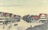 The original market square was considerably smaller but its area has gradually been increased in connection with demolitions and construction of new buildings.