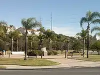 A statue of Christopher Columbus in the park was vandalized in February, 2019, with red paint splattered on it and graffiti. A bronze plaque previously attached to the statue had been stolen.[3] The statue was put in storage in June 2022 in anticipation of a George Floyd protest.[4] On May 25, 2021, the city voted to permanently remove it.[5]