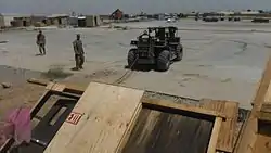![]() U.S. soldiers disassembling their building on the Forward Operating Base Kunduz Airfield (2013) | |||||||||||