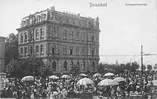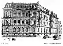 The rooms of the technical college or university were housed in a new building erected in 1882/83 at Burgplatz in the Düsseldorfer Altstadt.