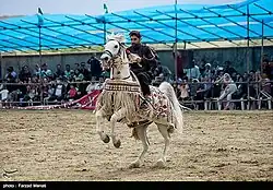 ![]() A man riding a Kurdish horse adorned with traditional garments in a festival dedicated to the horse breed in Sanandaj, Kurdistan province | |