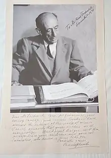 His mother, Ernestine Fuchsgelb, was murdered in Auschwitz in 1944.[8] Frederick gave the world premiere for Ernst Krenek's Fifth Symphony.[10] He also gave the world premiere for Arnold Schoenberg's A Survivor from Warsaw with the Albuquerque Civic Symphony on November 4, 1948. Frederick obtained the world premiere of A Survivor from Warsaw through an arrangement made with Schoenberg in which Frederick agreed to produce copied parts of the score and send them back to Schoenberg.[11] He also played a part in the creation of the Albuquerque Youth Symphony and served as its first conductor.[12] Frederick received his PhD in Philosophy of Music from the Eastman School of Music in 1957.