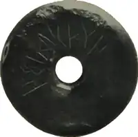 The second spindlewhorl was discovered by farmers plowing a field near Shokhtoy. As it was found by happen-stance outside of an orderly archaeological dig Ksenofontov didn't consider the Kurumchi as the probable creators of the item.[32] Donner and Räsänen were only able to distinguish some of the eroded characters. They offered "the fifth of the snowy month" and "the fifth month of the arqar year" as partial translations.[42] Later Ksenofontov,[46] Malov,[41] Orkun,[37] and Bazin[47] offered their own interpretations of the partial text. In 2019 Tishin made a comprehensive translation.[38]