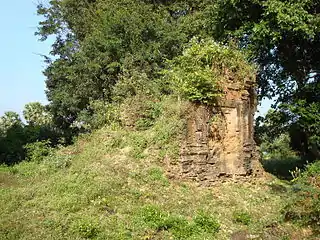 There are three collapsed brick towers arranged in a north–south row on a raised earth all facing to east. The platform of the central tower is brick but the other two are built in laterite.[2]