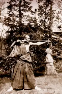 Kyūjutsu (弓術) ("art of archery") is the traditional Japanese martial art of wielding a bow (yumi) as practiced by the samurai class of feudal Japan.[1] Although the samurai are perhaps best known for their swordsmanship with a katana (kenjutsu), kyūjutsu was actually considered a more vital skill for a significant portion of Japanese history. During the majority of the Kamakura period through the Muromachi period (c.1185–c.1568), the bow was almost exclusively the symbol of the professional warrior, and way of life of the warrior was referred to as "the way of the horse and bow" (弓馬の道, kyūba no michi).[2]