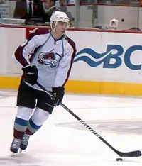 Cumiskey played most of the 2006–07 season for the Albany River Rats of the American Hockey League but appeared in nine games for the Avalanche. His first career NHL goal was the only goal in regulation for the Avalanche in a 2–1 shootout win over Manny Fernandez and the Minnesota Wild on January 6, 2007.[2] During the next two seasons, Cumiskey split time between the Lake Erie Monsters of the AHL and the Avalanche; however, he was sidelined by injuries for a significant amount of time in both years. A groin injury caused Cumiskey to miss 17 games in the 2007–08 season, and his 2008–09 season ended early with shoulder surgery on February 18.