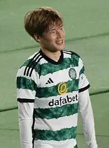Kyogo Furuhashi (古橋 亨梧, Furuhashi Kyōgo, born 20 January 1995), often known mononymously as Kyogo, is a Japanese professional footballer who plays as a forward for Scottish Premiership club Celtic and the Japan national team.