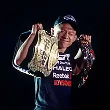 Kyoji Horiguchi (Japanese: 堀口 恭司, Horiguchi Kyōji, born October 12, 1990) is a Japanese mixed martial artist[8] currently competing in Bellator MMA and Rizin FF[9] in the Flyweight division, where he is the current RIZIN Flyweight Champion. He is also the former bantamweight champion in both organizations. As of July 30, 2023, he is #5 in the Bellator Bantamweight Rankings.[10]