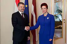 Kövér with Latvian House Speaker Solvita Āboltiņa in 2012