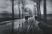 Misonne is best known for his atmospheric photographs of landscapes and street scenes, with light as a key feature,[6] and as a pioneer of pictorialism.[5][7] According to the Directory of Belgian Photographers, "Misonne’s work is characterised by a masterly treatment of light and atmospheric conditions. His images express poetic qualities, but sometimes slip into an anecdotal sentimentality."[4] He was nicknamed "the Corot of photography".[8][9]