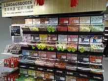 Over time, what was once a recommendation has turned into a routine for both children and adults to eat candy on Saturdays, as an event to look forward to during the week.[4] It is common for Swedes to buy lördagsgodis by weight from candy walls in grocery stores.[5]