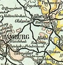 In 1899, a line to Hollenbek was opened from Mölln by the Prussian State Railways, connecting with the Ratzeburg–Hagenow line. In 1903, the Ratzeburg Light Railway (Ratzeburger Kleinbahn) was opened from Ratzeburg and in 1904 the Alt-Rahlstedt–Volksdorf–Wohldorf Electric Light Railway (Elektrische Kleinbahn Alt-Rahlstedt–Volksdorf–Wohldor) was opened from Rahlstedt, where it connected with the Lübeck–Hamburg line. There were numerous industry sidings, especially in the urban areas of Lübeck, Hamburg and Wandsbek.