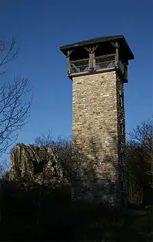 - Teufelsfels (569.0 m), rocks (natural monument, NM), southwest of the Womrather Höhe; with observation tower