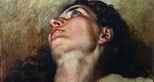 In February 2013, Paris Match reported that Courbet expert Jean-Jacques Fernier had authenticated a painting of a young woman's head and shoulders as the upper section of L'Origine du monde which according to some was severed from the original work. Fernier has stated that because of the conclusions reached after two years of analysis, the head will be added to the next edition of the Courbet catalogue raisonné.[2][6] The Musée d'Orsay has indicated that L'Origine du monde was not part of a larger work.[7] The Daily Telegraph reported that "experts at the [French] art research centre CARAA (Centre d'Analyses et de Recherche en Art et Archéologie) were able to align the two paintings via grooves made by the original wooden frame and lines in the canvas itself, whose grain matched."[2] According to CARAA, it performed pigment analyses which were identified as classical pigments of the 2nd half of the 19th century. No other conclusions were reported by the CARAA.[8] The claim reported by Paris Match was characterized as dubious by Le Monde art critic Philippe Dagen, indicating differences in style, and that canvas similarities could be caused by buying from the same shop.[9]