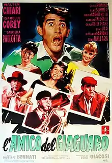 The Friend of the Jaguar (Italian: L'amico del giaguaro) is a 1959 Italian comedy film directed by Giuseppe Bennati and starring Walter Chiari, Isabelle Corey and Carlo Romano.[1] The film's sets were designed by the art director Piero Filippone.