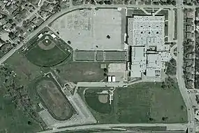 Aerial image of the entire Bell High School campus (outdated; does not include the E. Don Brown Activity Center opened in 2013)