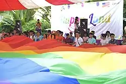 From 18 September 2017 to 24 September 2017, Vietnam's Hanoi Pride took place for a fifth consecutive year. The event hosted thousands of people, compared to only about a hundred at the first pride parade.[63] Irish drag queen Panti Bliss attended the event.[64] The sixth Hanoi Pride took place in November 2018, and saw the participation of more than a 1,000 people. The parade uniquely involves supporters and participants peddling on their bikes to campaign for transgender rights and same-sex marriage in the country.[65][66] Over 35 similar events are held each year throughout Vietnam, including in the cities of Haiphong, Thanh Hóa, Da Nang, Qui Nhơn, Nha Trang, Vũng Tàu, Ho Chi Minh City and Cần Thơ. The events were aired by several Vietnamese television channels, namely VTV4, VTV6 and VTV9.[67][68]