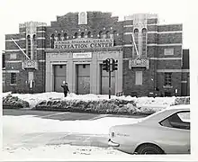 The L Street Bathhouse stands at L Street and Day Boulevard in South Boston, facing Carson Beach (or the L Street Beach, as that part of the beach is sometimes called). The original bathhouse was one of several built by the city in 1866 to enable poor immigrants, who lived in tenements with no indoor plumbing, to bathe regularly. The motto "Cleanliness of Body Is Next to Godliness" was inscribed above the building's entrance. The bathhouse was rebuilt by Mayor Curley in 1931, and is officially known as the Curley Community Center.[8] In the 1970s, during Kevin White's administration, the women's half of the bathhouse was converted into temporary classrooms. Under Mayor Raymond Flynn, the whole building was renovated and turned into a fitness center, and women were once again allowed to join.[1]